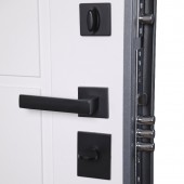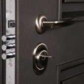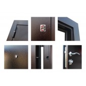 Лист металла 1 мм под внутренней панелью. Евроцилиндр К-В (перфокарта). Броненакладка врезная. Штырь противосъемный (3 шт.).