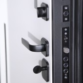 Установлен биометрический замок Smart lock Y23 . Замковая часть адаптирована под замену на биометрическую дверную ручку Smart lock T888 (ручка приобретается отдельно) или биометрический врезной замок Smart lock DZ 888 (замок покупается отдельно). Также можно произвести замену на биометрический замок Smart lock Y12 (биометрический замок покупается отдельно в комплекте с механическим замком Galeon 809 (цилиндровый).