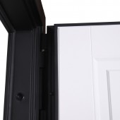 Панель МДФ 16 мм (цвет «белый матовый»). Объемная фрезеровка. Прижимная рамка 30 мм. (покраска в цвет двери). Стеклопакет тонированный.