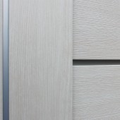 Экошпонированная панель МДФ 10 мм. Цветовая комбинация: "силк сноу" и "силк маус". Декоративная пластиковая вставка в черном цвете.