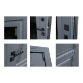 Лист металла 1 мм под внутренней панелью. Евроцилиндр К-В (перфокарта). Броненакладка врезная. Штырь противосъемный (3 шт.).