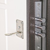 Лист металла 1мм под внутренней панелью. Евроцилиндр К-В (перфокарта). Броненакладка врезная. Штырь противосъемный (3 шт).
