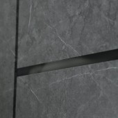 Панель МДФ 16 мм. Горизонтальные вставки из черного лакобеля. Цвет «бетон снежный».