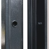 Евроцилиндр К-В (перфокарта). Броненакладка врезная. Накладки со шторками-автомат. Штырь противосъемный (3 шт). Порог из нержавеющей стали (цвет "хром").