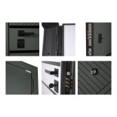 Установлен биометрический замок Smart lock Y23 . Замковая часть адаптирована под замену на биометрическую дверную ручку Smart lock T888 (ручка приобретается отдельно) или биометрический врезной замок Smart lock DZ 888 (замок покупается отдельно). Также можно произвести замену на биометрический замок Smart lock Y12 (биометрический замок покупается отдельно в комплекте с механическим замком Galeon 809 (цилиндровый).