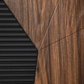 Экошпонированная панель МДФ 12 мм. (Дизайн ФЛС). Цвет «дуб панцифик горизонт". Вставка из черного лакобеля (100 мм).