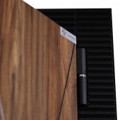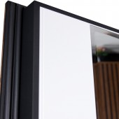 Экошпонированная панель МДФ 10 мм. Цвет "белый матовый". Вертикальная вставка из черного глянцевого лакобеля.