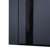 Экошпонированная панель МДФ 16 мм. Цвет «черный кварц». Зеркальная вставка из черного лакобеля с фацетированием.