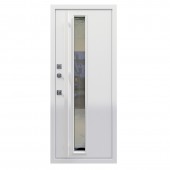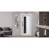 Панель МДФ 16 мм (цвет «белый матовый»). Объемная фрезеровка. Прижимная рамка 30 мм. (покраска в цвет двери). Стеклопакет тонированный.