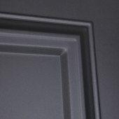Экошпонированная панель МДФ 16 мм. Цвет «графит». Вставка из белого матового лакобеля с фацетом.