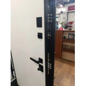 Евроцилиндр К-В (перфокарта). Броненакладка врезная. Штырь противосъемный (3шт). Дополнительная шумоизоляция. Дополнительный лист металла 1 мм с внутренней стороны под панелью.