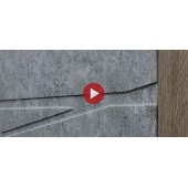 Экошпонированная панель МДФ 10мм. Цветовая комбинация: "бетон светлый" и "орех коньяк". Декоративная пластиковая вставка в черном цвете.