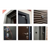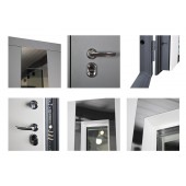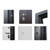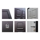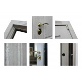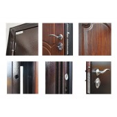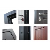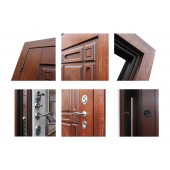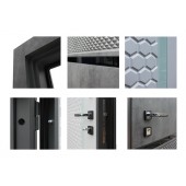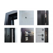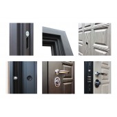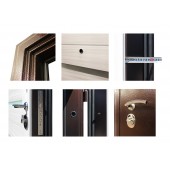 Евроцилиндр К-В (перфокарта). Броненакладка врезная. Штырь противосъемный (3шт). Порог из нержавеющей стали. Дополнительный лист металла 1 мм с внутренней стороны под панелью.