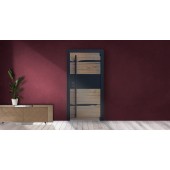 Экошпонированная панель МДФ 12 мм. (Дизайн ФЛС). Цвет «дуб панцифик горизонт". Вставка из черного лакобеля (100 мм).