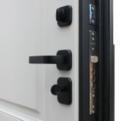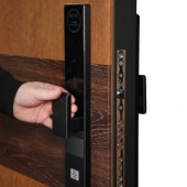 Установлен биометрический замок Smart lock Y23 . Замковая часть адаптирована под замену на биометрическую дверную ручку Smart lock T888 (ручка приобретается отдельно) или биометрический врезной замок Smart lock DZ 888 (замок покупается отдельно). Также можно произвести замену на биометрический замок Smart lock Y12 (биометрический замок покупается отдельно в комплекте с механическим замком Galeon 809 (цилиндровый).