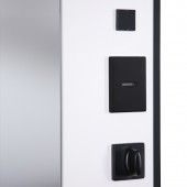 Экошпонированная панель МДФ 10 мм. Цветовая комбинация: "силк сноу" и "силк маус". Декоративная пластиковая вставка в черном цвете.
