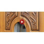 Панель МДФ 10 мм. Объемная фрезеровка. Патинирование по фрезеровке. Покрытие Vinorit. Цвет: «голден ОАК». Стеклопакет.