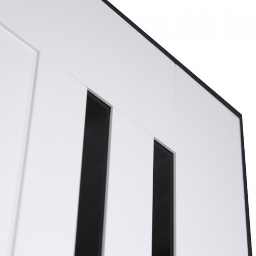 Экошпонированная сборная панель МДФ 16 мм. Цвет: «белый матовый». Вертикальные вставки из черного стекла.