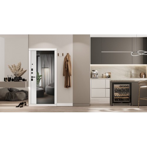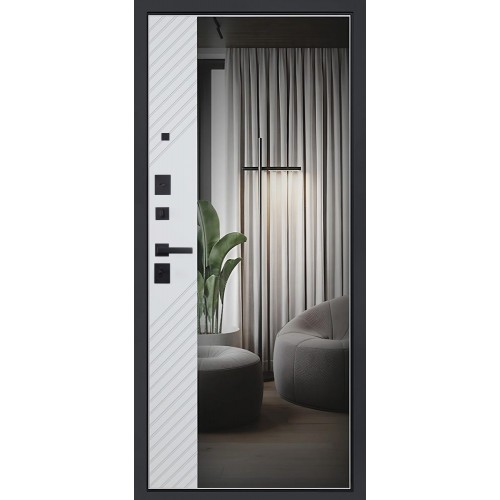 Альфа" с зеркалом - надежная стальная дверь, которая отлично впишется в стиль "эко", "лофт", "техно". Модель изготовлена по специальному дизайнерскому проекту и успешно прошла все обязательные заводские и