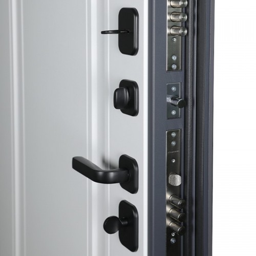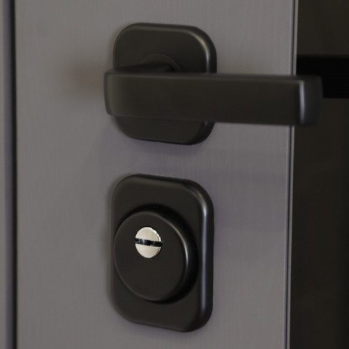 Ручка, ночная задвижка, глазок на квадратной розетке. Цвет фурнитуры «черный».