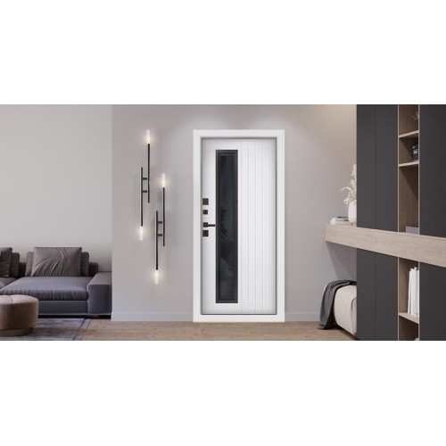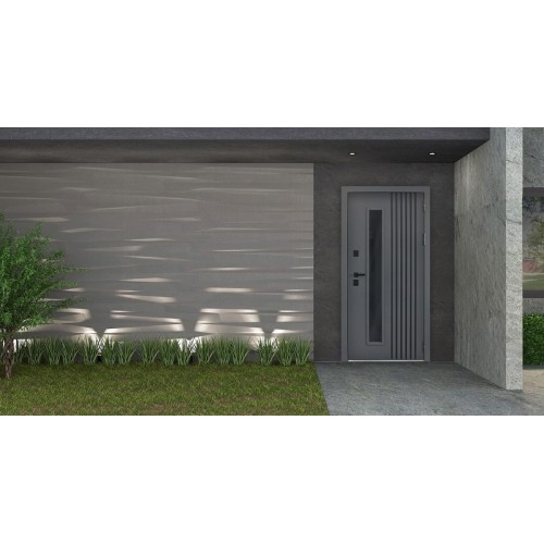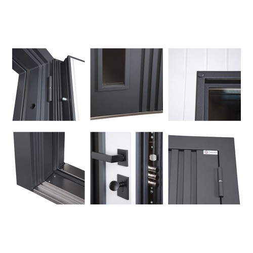 Модель с окном «Arte» с окном, выполнена по технологии терморазрыва специально для современных загородных домов и коттеджей со входом, оборудованным холодным тамбуром. Результаты внутреннего производственного контроля в условиях завода показали, что данная дверная конструкция может гарантировать срок бесперебойной службы от 20 до 25 лет, если будет использоваться в соответствии со всеми условиями, указанными в Паспорте изделия.