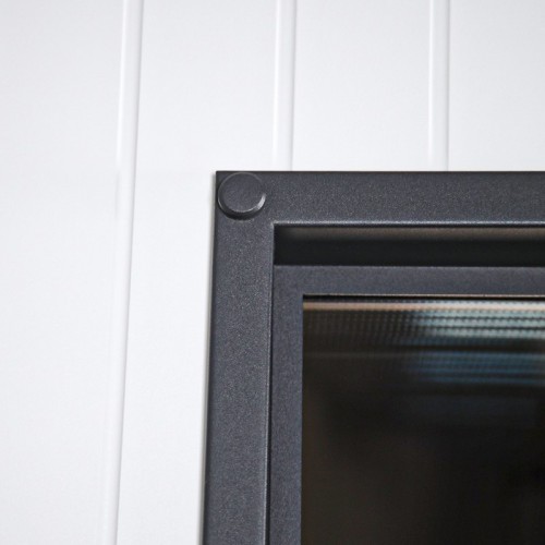 Панель МДФ 16 мм (цвет «белый матовый»). Объемная фрезеровка. Прижимная рамка 30 мм. (покраска в цвет двери). Стеклопакет тонированный.