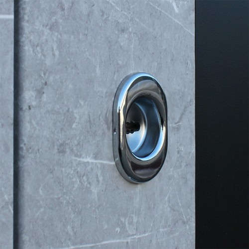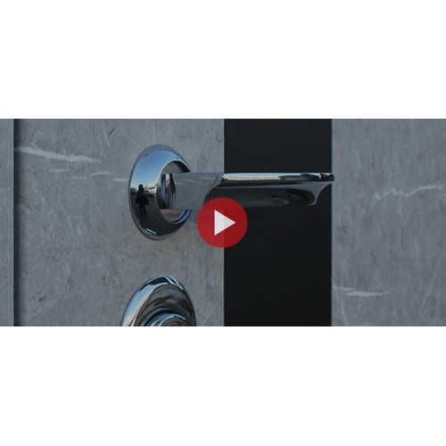 Ручка, ночная задвижка, глазок на квадратной розетке. Цвет фурнитуры «хром». Смотрите также: ДВЕРНЫЕ ГАДЖЕТЫ