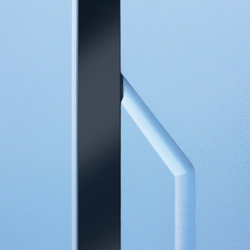 Экошпонированная панель МДФ 10 мм. Цвет «силк сноу». Декоративная вставка из нержавеющей стали.