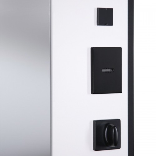 Ручка, ночная задвижка, глазок на квадратной розетке (цвет «черный»). Смотрите также: ДВЕРНЫЕ ГАДЖЕТЫ