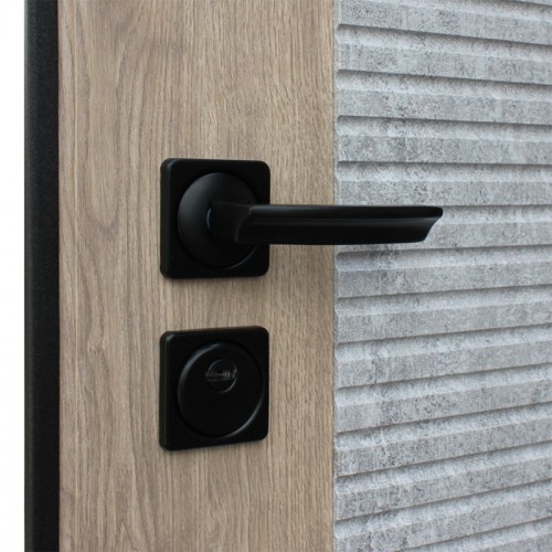 Ручка, ночная задвижка, глазок на квадратной розетке (цвет «Черный»). Смотрите также: ДВЕРНЫЕ ГАДЖЕТЫ