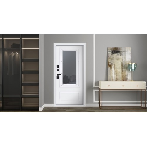 Хотите больше света в прихожей без потери тепла? «Дравит» с окном создана для уличной установки при наличии навеса или козырька. Терморазрыв в коробке, полотно 100 мм, три контура уплотнения и утепление «Ursa» помогают сохранять комфорт. Закаленный двухкамерный стеклопакет с декоративной решеткой пропускает свет и сохраняет тепло. По испытаниям — М1 класс прочности и 4 класс взломостойкости.Изучите характеристики и получите консультацию перед выбором.
