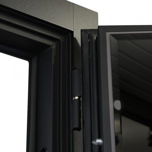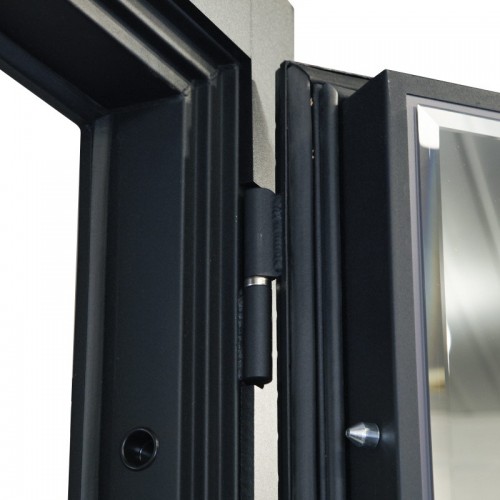 Евроцилиндр К-В (перфокарта). Броненакладка врезная. Штырь противосъемный (3 шт). Порог из нержавеющей стали (цвет "хром").