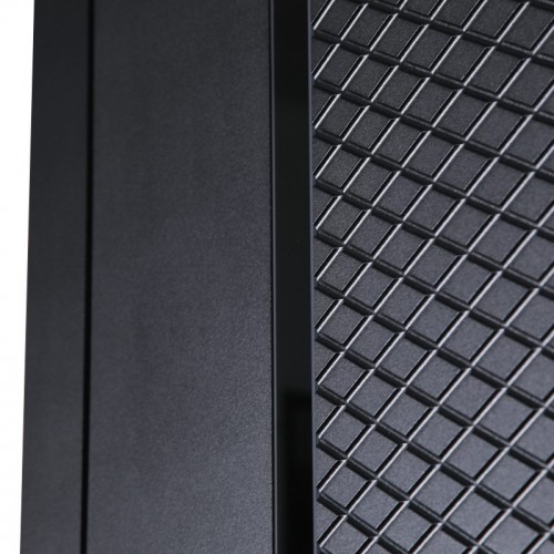 Экошпонированная панель МДФ 16 мм. Цвет «графит». Широкая вставка из черного лакобеля с фацетом.