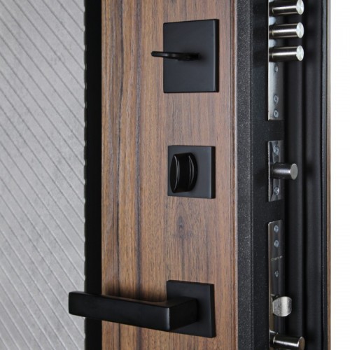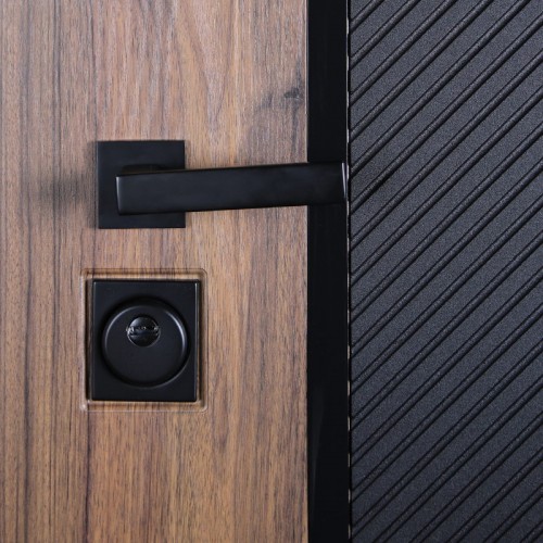 Ручка , ночная задвижка, глазок на квадратной розетке. Цвет фурнитуры «черный». Смотрите также: ДВЕРНЫЕ ГАДЖЕТЫ