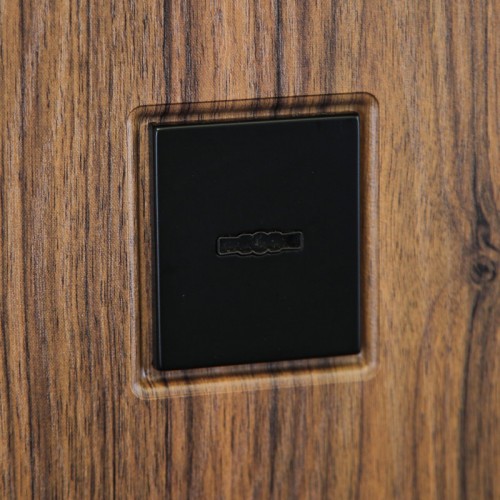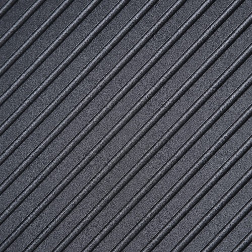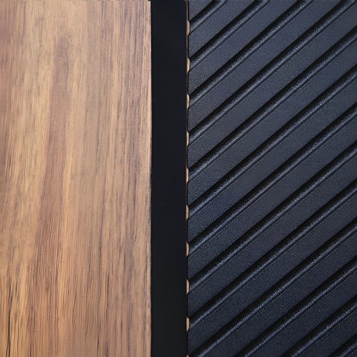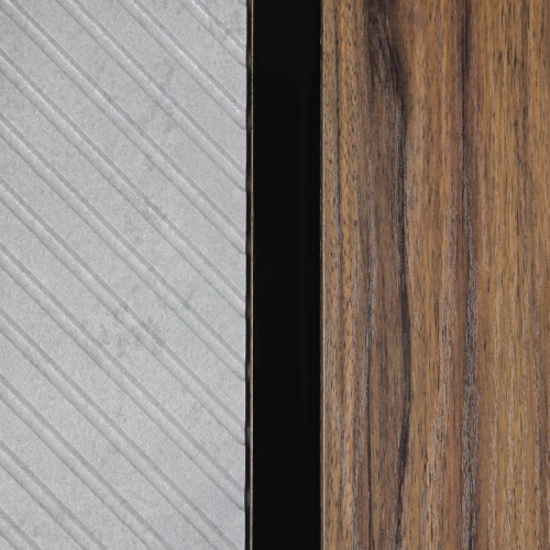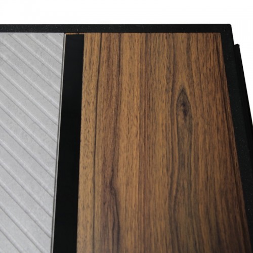 Экошпонированная панель МДФ 10мм. Цветовая комбинация: "бетон светлый" и "орех коньяк". Декоративная пластиковая вставка в черном цвете.