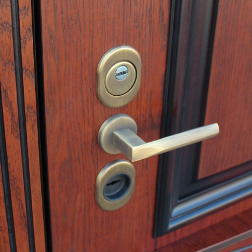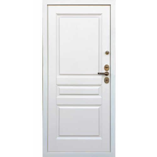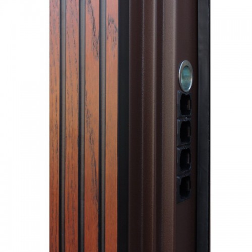 Евроцилиндр К-В (перфокарта). Броненакладка врезная. Штырь противосъемный (3 шт). Порог из нержавеющей стали (цвет "золото"). Автоматическая подсветка в дверной коробке.