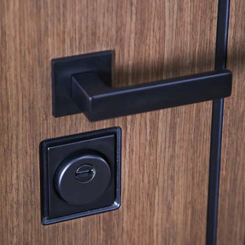 Ручка, ночная задвижка, глазок на квадратной розетке. Цвет «Черный». Смотрите также: ДВЕРНЫЕ ГАДЖЕТЫ