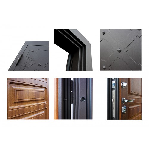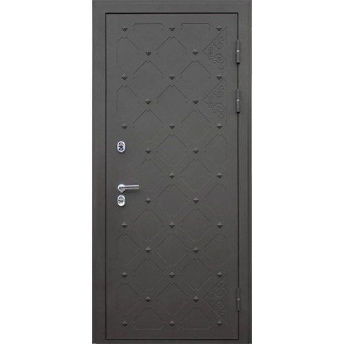 Отличительная особенность заказной модели "Геркулес" - это применение во внутренней конструкции технологии терморазрыва. Кроме того, внутренняя отделка двери выполнена посредством декоративной лазерной резки по металлу. Все поверхности модели обработаны особым покрытием из цинкогрунта, благодаря чему эту дверь можно смело устанавливать на улице.
