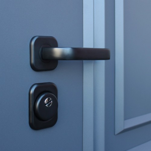 Ручка, ночная задвижка, глазок на квадратной розетке. Цвет фурнитуры «черный». Смотрите также: ДВЕРНЫЕ ГАДЖЕТЫ