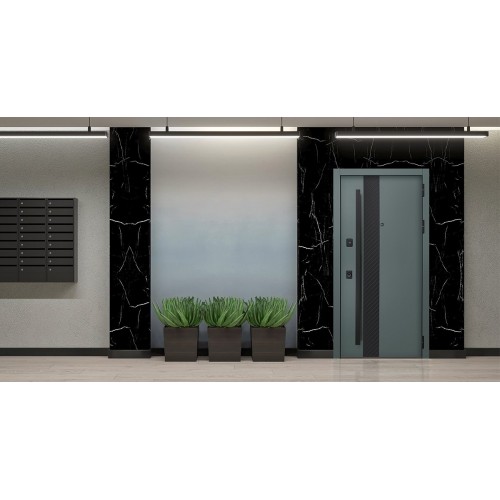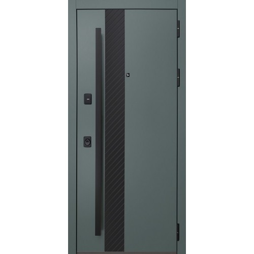 Снаружи: ручка–скоба Art 50*25 Inox Basic Mechanical (цвет ral 9005). Внутри: ручка RedLine, ночная задвижка, глазок на квадратной розетке (цвет «черный»). Смотрите также: ДВЕРНЫЕ ГАДЖЕТЫ