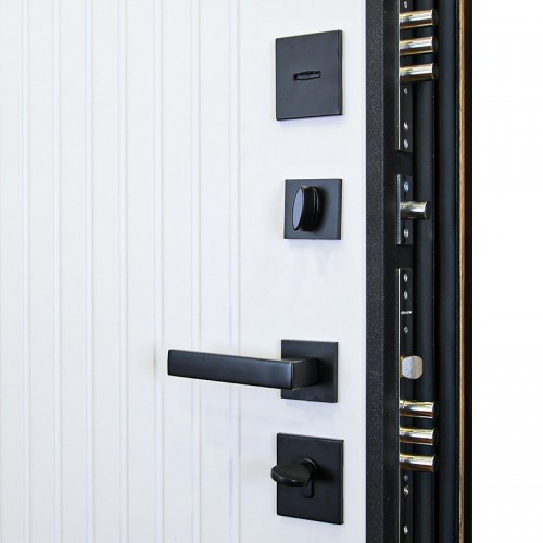 Ручка, ночная задвижка, глазок на квадратной розетке. Цвет фурнитуры «черный». Смотрите также: ДВЕРНЫЕ ГАДЖЕТЫ