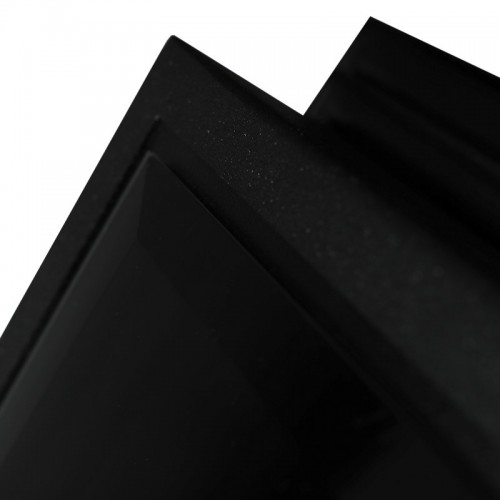 Экошпонированная панель МДФ 16 мм. Цвет «черный кварц». Зеркальная вставка из черного лакобеля с фацетированием.