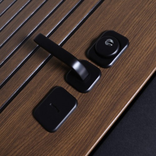Ручка , ночная задвижка, глазок на квадратной розетке. Цвет фурнитуры «черный». Смотрите также: ДВЕРНЫЕ ГАДЖЕТЫ