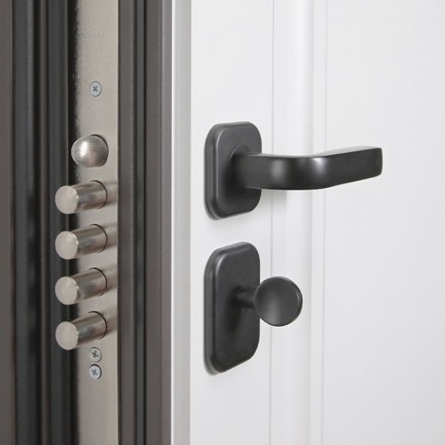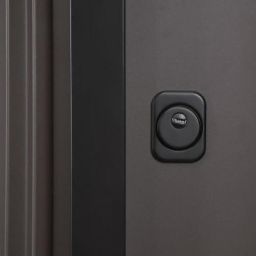 Снаружи ручка–скоба Art 50х25 Inox Basic Mechanical (цвет ral 9005), датчик (кабель канал). Внутри ручка Fuaro TOR XL BL-24, ночная задвижка FuaroBL-24 на квадратной розетке (цвет «черный»). Смотрите также: ДВЕРНЫЕ ГАДЖЕТЫ