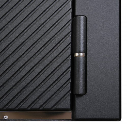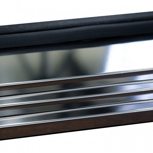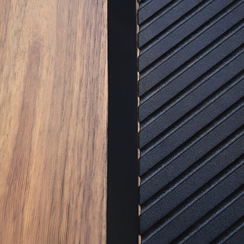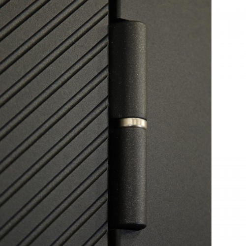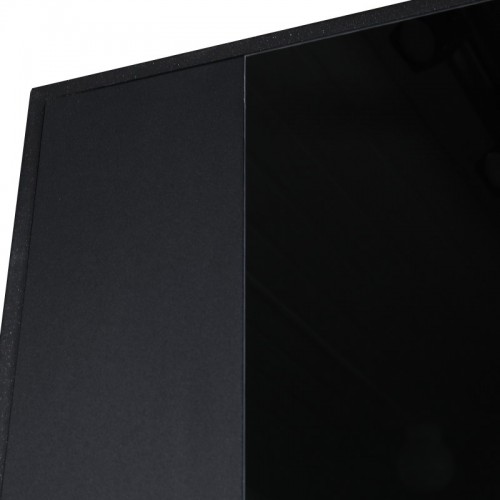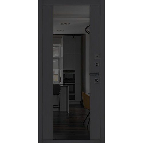 Экошпонированная панель МДФ 16 мм. Цвет «черный кварц». Вертикальная зеркальная вставка из черного лакобеля.