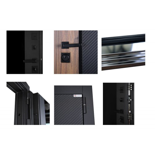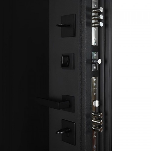 Ручка , ночная задвижка, глазок на квадратной розетке. Цвет фурнитуры «черный». Смотрите также: ДВЕРНЫЕ ГАДЖЕТЫ