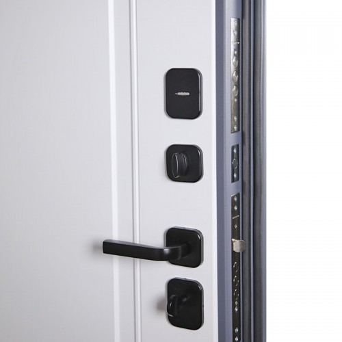Ручка, ночная задвижка, глазок на квадратной розетке. Цвет фурнитуры «черный». Смотрите также: ДВЕРНЫЕ ГАДЖЕТЫ