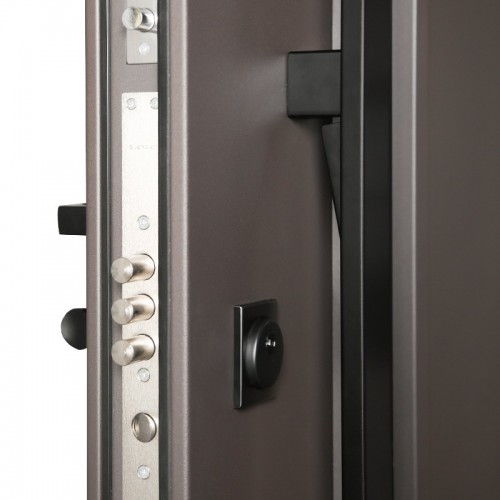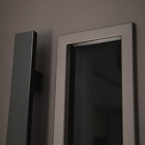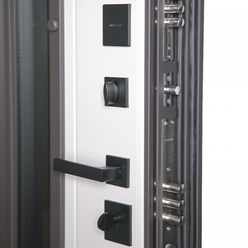 Снаружи ручка–скоба Art 1640 х 60мм х 20мм Inox Basic Mechanical (цвет ral 9005). Внутри ручка RedLine, ночная задвижка на квадратной розетке (цвет «черный»). Смотрите также: ДВЕРНЫЕ ГАДЖЕТЫ