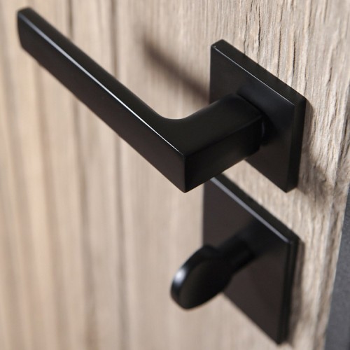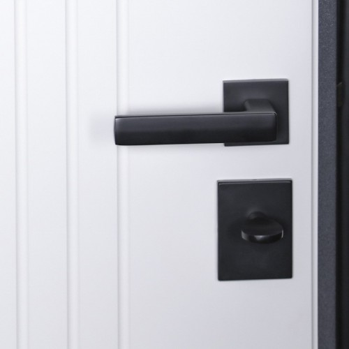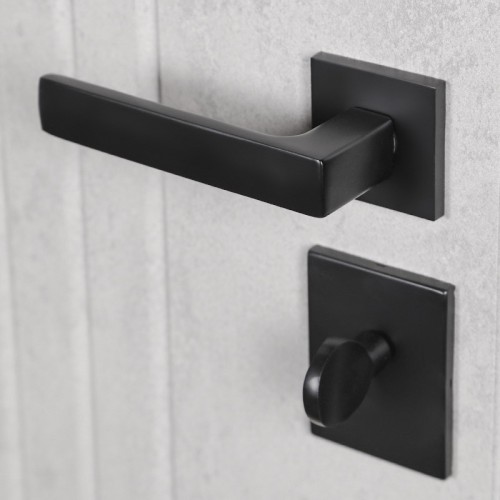 Ручка, глазок, ночная задвижка на квадратной розетке (цвет «черный»). Смотрите также: ДВЕРНЫЕ ГАДЖЕТЫ