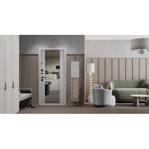 Стальная дверь «Дуэт-Б»* с зеркалом - отличный вариант для покупателей, ценящих необычные интерьерные решения и функциональность. Во внутренней отделке модели используется встроенное зеркало - дизайнерский элемент, пользующийся повышенным спросом среди покупателей . Безопасность модели представляют два надежных замка с цилиндровым и сувальдным механизмом.* "Дуэт-Б" - буквой "Б" в названии отмечаются модели серии дверей "Дуэт", выполненные в отделке из экошпона в цвете "бетон светлый, бетон темный"